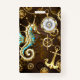 Crachá Fundo de madeira com cavalo de mar mecânico