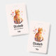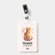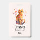 Nome de etiqueta com uma ilustração adorável de aquarela. Um gato de mesa laranja parecendo amigável e feliz com corações girando em volta.