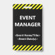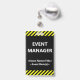Este design de crachá de revisão apresenta a mensagem "EVENT MANAGER". Um crachá como este poderia talvez ser usado para mostrar que o usuário é um representante oficial em um evento. [~Z0000307]