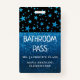 Grelhas de brilho azul metálico por trás de um passe de banheiro fácil de ler e atualizar. Atualize o texto para mostrar o professor e o nome da escola, assim como o propósito do crachá. Disponível em muitas outras cores brilhantes e designs estelares.