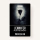 Nome de etiqueta com uma ilustração macabra de um rosa preto de gótico/éme com sangue vermelho pingando em suas pétalas. Um fundo preto verde com o centro e uma cor esbranquiçada destacando esta misteriosa e interessante rosa de fantasia.