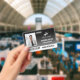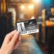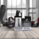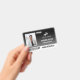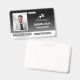 Crachá de ID do funcionário com um design minimalista limpo em preto e branco. Adicione uma foto do funcionário junto com o nome e a profissão contra um fundo de gradiente preto. Personalize ainda mais o logotipo e o código do bar da sua empresa.