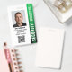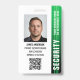 Crachá de guarda de segurança profissional com foto de perfil e logotipo da empresa. Este modelo editável pode ser personalizado com uma foto, nome, cargo, número de identificação, empresa, data de expiração, código QR e logotipo para marcas. Um design moderno com faixas de gradiente e uma fonte limpa. Ele oferece texto totalmente personalizável para ajustado da marca de sua empresa. Ideal para vários locais de trabalho e funções, como guarda de segurança, oficial de proteção próximo, segurança privada corporativa, segurança de loja, guarda pessoal, porteiro oficial, equipe de eventos, assistentes de varejo, funcionarios médico, passe para pequenas empresas, nomes de etiqueta de conferência e muito mais! Cores impressas: preto, branco e verde. Compre a coleção para obter ideias e suprimentos de produtos de segurança mais populares para venda on-line.