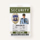 Guarda do Agente de Segurança Profissional. Crie seu próprio crachá oficial. Design personalizado de um crachá para qualquer funcionário adicionando qualquer nome, foto, cor do cabelo, cor do olho, altura, peso, ID do crachá, código de barras, logotipo e muito mais!