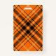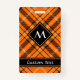 Amostra moderna de tartã laranja e preto de halloween. Texto personalizado e monograma.