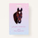 This stunning horse is looking directly at you with its lovely white star. Below the horse are two easy templates for your personalized text and one on the back. The background is a pretty pink to blue.