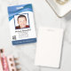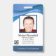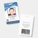 Crachá personalizado de ID de abstrato com um design azul ondulado legal e moderno acima do engenheiro de software ou da foto do funcionário do técnico de reparo de TI. Adicione a sua própria fotografia e informações personalizadas, incluindo o título do cargo, o nome do departamento, o número de identificação, a data de emissão ou de expiração e o nome e logotipo da empresa ou da empresa. Pode ser personalizado com seu código de barras de segurança pessoal na parte traseira para acesso e autorização.