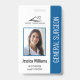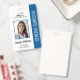 Personalize facilmente este crachá básico de segurança de fotos de funcionários de saúde azul com seus detalhes personalizados.