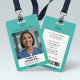 Este crachá elegante e colorido é ideal para enfermeiros e profissionais de saúde em vários departamentos hospitalares. Projetado com um layout vertical limpo, ele apresenta uma grande foto, nome, departamento, cargo e número de ID de funcionário para identificação clara. O verso fornece espaço para os detalhes de contato de emergência, um código de barras para uma varredura eficiente e o site do hospital. Adequado para vários contextos médicos, incluindo cirurgias médicas, unidades de cuidados intensivos (UTI) e outros departamentos hospitalares, este crachá combina segurança, funcionalidade e um design moderno.