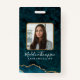 Crachá de ID da Empresa Comercial de Agate Dourado Teal Marble