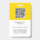 Um Crachá de identificação profissional vibrante com foto, nome e título do funcionário junto com o logotipo da sua empresa. A parte traseira do crachá tem um modelo para o código QR do site da sua empresa e informações adicionais da empresa, conforme desejado. Todo o texto pode ser editado conforme você preferir. O design amarelo-mostarda em negrito com texto preto é atraente e profissional.