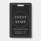 O crachá de ID de passagem do funcionarios de evento simples fica branco em preto.