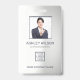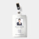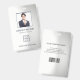 Cartão de identificação de empresa de fotos moderno com código de bar sobre o fundo da cinza gradiente. Informações adicionais podem ser adicionadas à parte traseira deste crachá de ID de negócio