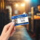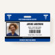 ID do funcionário do funcionarios médico azul, preto e branco (crachá de identificação) para uma enfermeira prática licenciada (LPN). Personalize-o adicionando uma foto de funcionário, um código de barras e informações pessoais.