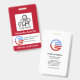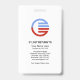 Um simples design de caixa de colunas vermelho e branco. A camada vermelha acima contém uma opção de modelo de foto com tamanho de 1.000 x 1.000 pix. Seu nome prestigiado está logo abaixo do logotipo. Na camada branca, há um logotipo global opcional que você pode usar. Ao lado dele está o nome da organização e do departamento junto ao número do funcionário. O cargo está na base do cartão.