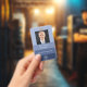 Crachá de identificação de foto da empresa negra moderna personalizada