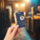 Crachá ID de Foto do Código QR Notário Azul e Dourado Pro