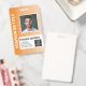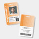 Padrão Tribal Laranja e Branco - Um design de negócios moderno que destaca os logotipos de seu escritório e o nome do funcionário. Este design do escritório de tendências também inclui um número de ID do crachá, data de validade e enfermeiro ou outro título. VOLTA: você pode adicionar um código de bar de digitalização na parte traseira e um local para adicionar informações se o crachá for perdido. Você também pode mudar a cor do plano de fundo. Clique no botão personalizar e escolha uma cor de fundo para a frente e para trás.
