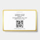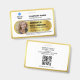 Cartão de identificação Elegante, Na moda Dourado e Preto Minimalista para pequenas empresas com código QR, Crachá de identificação de fotos para funcionários personalize facilmente o design para tornar seus crachás totalmente exclusivos. O texto personalizado adicional está localizado no verso para informações de devolução ou outros detalhes. Código QR personalizável no verso.