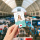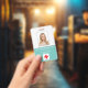 Crachá de identificação com foto de funcionário hospitalar profissional médico aqua ou turquesa e branco.