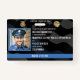 O crachá de identificação do departamento de polícia personalizável apresenta um emblema policial no topo que pode ser personalizado para seu departamento, assim como um local para o logotipo do estado também. Personalize com a foto do oficial à esquerda. Além da foto, são exibidos o nome, o número do crachá, a classificação e o departamento do oficial. Adicione seu próprio código de barras à parte traseira do cartão, juntamente com as datas de emissão e expiração, e descrição do oficial, capitão, chefe ou funcionário do escritório.