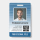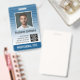Azul e branco - Um design comercial moderno que destaca os logotipos de seu escritório e o nome do funcionário. Este design do escritório de tendências também inclui um número de ID do crachá, data de validade e enfermeiro ou outro título. VOLTA: você pode adicionar um código de bar de digitalização na parte traseira e um local para adicionar informações se o crachá for perdido. Você também pode mudar a cor do plano de fundo. Clique no botão personalizar e escolha uma cor de fundo para a frente e para trás.