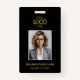 Melhore sua imagem profissional com o nosso moderno Crachá Dourado minimalista de identificação de funcionário com fotografia e logotipo de empresa. Este crachá elegante apresenta um logotipo, nome e título dourado personalizado para uma aparência polida. Perfeito para as empresas que procuram uma identidade na moda e coesa.