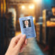 Crachá ID de Fotografia Corporativa Metálica Azul Moderno