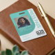 Crachá moderno e moderno do passe de fotografia. Nossa design apresenta um design azul-verde moderno e moderno e curvo. Personalize com foto, nome, logotipo, data de expiração e validade, bem como o número de identificação de funcionário opcional. O verso apresenta um design tricolorido de tendências curvo (as cores podem ser alteradas para se adequarem à sua marca).