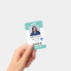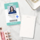 Este cartão de identificação de funcionário do hospital vertical mínimo apresenta tipografia moderna e design simples. Personalize-o com sua foto, logotipo, nome, cargo, código de barras e texto personalizado.