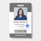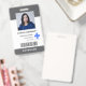 Este cartão de identificação de funcionário do hospital vertical mínimo apresenta tipografia moderna e design simples. Personalize-o com sua foto, logotipo, nome, cargo, código de barras e texto personalizado.