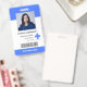 Este cartão de identificação de funcionário do hospital vertical mínimo apresenta tipografia moderna e design simples. Personalize-o com sua foto, logotipo, nome, cargo, código de barras e texto personalizado.