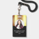 Ouro modelo metálico e crachá preto com fotografia, título e nome. Para pessoas por conta própria ou para pequenas empresas para eventos e outras atividades empresariais. Moderno e atraente. Basta adicionar sua própria foto profissional. VOCÊ PODE ADICIONAR UM LANYARD, CLIP OU UM ANEXO RETRATÁVEL. Veja as opções de anexos à direita.