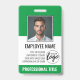 Acentos Brancos e Verdes - Um design básico empresarial que destaca os logotipos do seu escritório e o nome do funcionário. Este design de escritório tradicional também inclui um número de identificação no crachá, data de validade e enfermeira ou outro título.