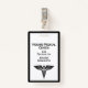 Lanyard, retrátil ou recorte sobre estilos com insígnia médica e três áreas de texto. Nome da Empresa - posição e nome do funcionário