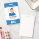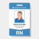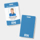 Um crachá para enfermeiros, incluindo fotografia, nome, número de identificação e código de certificação. Este crachá é ideal para funcionarios médicos como enfermeiro registrado RN, enfermeiro Prático Licenciado LPN, enfermeiro NP ou Unidade de Cuidados Intensivos ICU. Este moderno crachá de identidade dos empregados também funcionará bem para funcionarios em lares de idosos e de enfermagem. Note que o código de certificação, como RN, LPN, PN ou ICU, também é mostrado na parte de trás do crachá.
