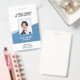Um crachá de ID de funcionarios personalizado com uma fotografia pessoal. A design mostra a fotografia dos funcionários, assim como o nome do funcionário. Além disso, inclui a ocupação dos trabalhadores e o número de identificação do crachá. O moderno crachá de ID de funcionarios de funcionário pode ser personalizado com o logotipo, o nome comercial e a linha de etiqueta ou o slogan da sua empresa. O verso deste crachá de ID fica vazio e aberto para que você adicione mais informações, como um código de bar ou detalhes de contato do funcionário. As cores podem ser personalizadas para corresponder ao esquema de cores da sua empresa.
