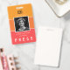 Um crachá de nome e foto moderno e minimalista ID de imprensa, perfeito para qualquer profissão jornalística: jornalistas, repórteres, fotógrafos, etc... Cores de fundo totalmente personalizáveis. Você também pode adicionar facilmente seu código de barras ou QR code para segurança.