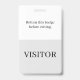 Crachá de passe de visitante vertical em branco e cinza. Todos os elementos são mutáveis ou removíveis. Elementos incluem: Nome da empresa, Visitante (pode dizer "convidado" ou "passe" ou qualquer palavra), a frase "Devolva este crachá antes de sair", Espaço no topo para cordão, mas você pode escolher outra opção, como um clipe de metal ou uma tira retrátil. Também disponível no estilo horizontal.