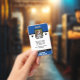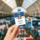 Identificação do animal/cão de serviço (crachá de identificação) de suporte emocional azul, preto e branco. Personalize-o adicionando uma fotografia do seu animal e informações de registro.