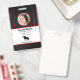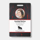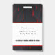 Crachá de identificação do funcionário da empresa com modelos criados para você. O fundo é um abstrato moderno em vermelho, branco e preto.