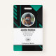 Crachá de identificação do funcionário da empresa com modelos criados para você. O fundo é um abstrato moderno de cores pretas e verdes.