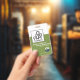 Um design de coluna verde e branco retrorreflector é destacado por uma faixa branca próxima ao centro do crachá.