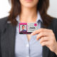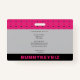 Um elegante e moderno crachá de identificação de funcionário corporativo em moderno padrão magenta preto e rosa quente para sua empresa. A cor magenta rosa pode provocar uma grande variedade de emoções e pensamentos, o que promove compaixão, apoio e gentileza e estimula um sentimento de autorespeito e contentamento em quem a usa. Pode ajudar as ambições e os desejos a tornarem-se realidade. No mundo empresarial, a magenta-rosa é mais adequada para as pessoas que trabalham em áreas artísticas ou criativas, como artistas, figurinos ou designers, escritores, fotógrafos, inventores, compradas de fornecimento de artistas ou comerciantes de arte. A magenta rosa é também uma cor benéfica para mentores e treinadores de vida a serem usados para ajudar seus clientes a largar ideias antigas e a seguir em frente em suas vidas. As suas mensagens imaginativas e inovadoras são encorajadoras para todos aqueles que olham para o futuro. Se você quer ter um impacto que diga ultrajante e vivo de uma forma positiva, a magenta rosa fará isso por você! Se você tiver um recurso exclusivo para a sua empresa, esse tom desenhar atenção a ele. Você pode personalizar facilmente a foto, o nome, o cargo, o logotipo, o nome da empresa e outros detalhes.