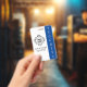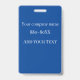 Este crachá de identificação para uma guarda de segurança ou funcionário apresenta um fundo branco com um logotipo de exemplo no centro. Você pode personalizar o crachá de ID para exibir o logotipo da sua empresa, empresa ou organização ou sua própria imagem personalizada. Há uma área abaixo do logotipo para impressão um nome de funcionário ou outro texto. A palavra "SEGURANÇA" é impressa no lado direito sobre uma faixa azul. A parte traseira do crachá de ID tem um plano de fundo azul com texto em branco onde você pode incluir o número de telefone da sua empresa ou outras informações.