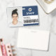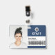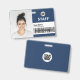 ID do Funcionarios de ID de Foto Comercial Personalize facilmente este Crachá de Nome do Funcionário Personalizado com Foto, Código do Bar de Digitalização e logotipo da empresa comercial, com nome das pessoas, ocupação, código de bar de identidade opcional, com clipe metálico incluído. Um crachá de marca útil para identificar funcionarios, visitantes ou convidados. Um simples design de negócios alinhado à esquerda em cores azuis e brancas marinhos totalmente personalizáveis nos tamanhos frontal e traseiro, fontes básicas e modernas sans-serif e uma aparência profissional e clara. Uma ferramenta útil para eventos corporativos, reuniões, renovações e celebrações. Crie mais cartões corporativos de identificação de crachá fotográfico em cores diferentes para qualquer categoria que você precise identificar: funcionarios, visitantes ou convidados. Disponível com ou sem jardim, clipe metálico ou com retratável. Sem ordem mínima.