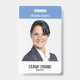 Um crachá de identificação moderno para seu funcionarios e funcionários com uma foto de identificação grande e proeminente. Ideal para funcionarios de escritório, funcionários de segurança, além de funcionarios médicos e hospitalares. A parte traseira foi deixada vazio neste modelo e está aberta para você adicionar mais informações.