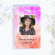 Crachá de identificação com fundo de aquarela roxo e vermelho para salão, spa, maquiador, cabeleireiro, funcionário, equipe. Use a opção personalizar este modelo para alterar o texto na frente e atrás. Para ajustar a foto e o texto, use a opção personalizar ainda mais. Para qualquer ajuda na alteração do texto, use a opção de mensagem abaixo do nome da nossa loja. Crédito da foto: SnapwireSnaps no Pixabay.com