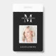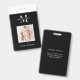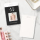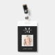 Crachá de ID minimalista com espaço para seu monograma ou logotipo de negócios, nome e foto. Este nome preto e branco e crachá fotográfico totalmente editáveis é excelente para maquiadores, cabeleireiros, cosmetólogos e qualquer outro negócio.