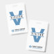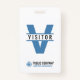 Um moderno crachá de identificação de visitante para sua empresa, pequena empresa, escola ou hospital. A simples mas elegante design mostra a letra V maiúscula com a palavra Visitor. Ele inclui nome comercial e logotipo, bem como uma linha de etiqueta comercial ou um slogan. Este moderno crachá de identificação de visitante pode ser facilmente ajustado para trabalhar como crachá de identidade para voluntários.